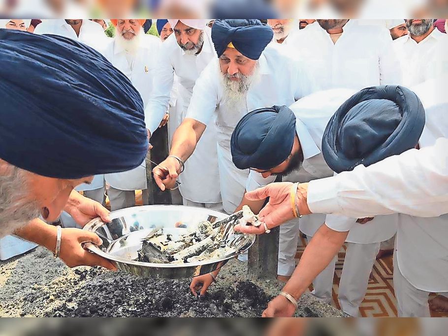 परकाश सिंह बादल की अस्थियां चुनी:अंतिम अरदास व श्रद्धांजलि समारोह उनके पैतृक गांव बादल में 4 मई को