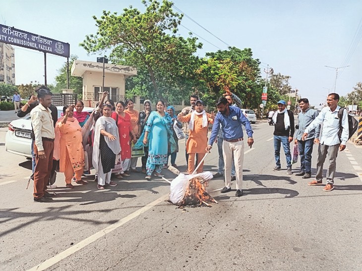 फाजिल्का के डिप्टी कमिश्नर कार्यालय के सामने कच्चे अध्यापकों ने पंजाब सरकार के खिलाफ पुतला फूंक प्रदर्शन किया। इस मौके पर यूनियन की प्रदेश नेता मैडम गगन और मंगा सिंह आजाद ने कहा कि मुख्यमंत्री भगवंत मान ने चुनाव से पहले उनसे वादा किया था कि पहली बैठक में उनकी मांगों को मानकर उन्हें पक्का कर दिया जाएगा, लेकिन 1 साल बाद भी उन्हें पक्का नहीं किया गया। इस कारण उन्हें 6000 रुपए के मामूली वेतन पर काम करने के लिए मजबूर होना पड़ रहा है। उन्होंने बताया कि चंडीगढ़ में शिक्षा मंत्री के साथ उनकी बैठक होनी थी।