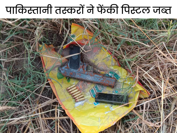 अबोहर में बॉर्डर से मिला हथियार:BSF ने सर्च के दौरान पिस्टल और 7 गोलियां जब्त की; घुसपैठिया भी काबू